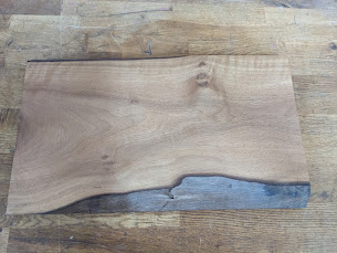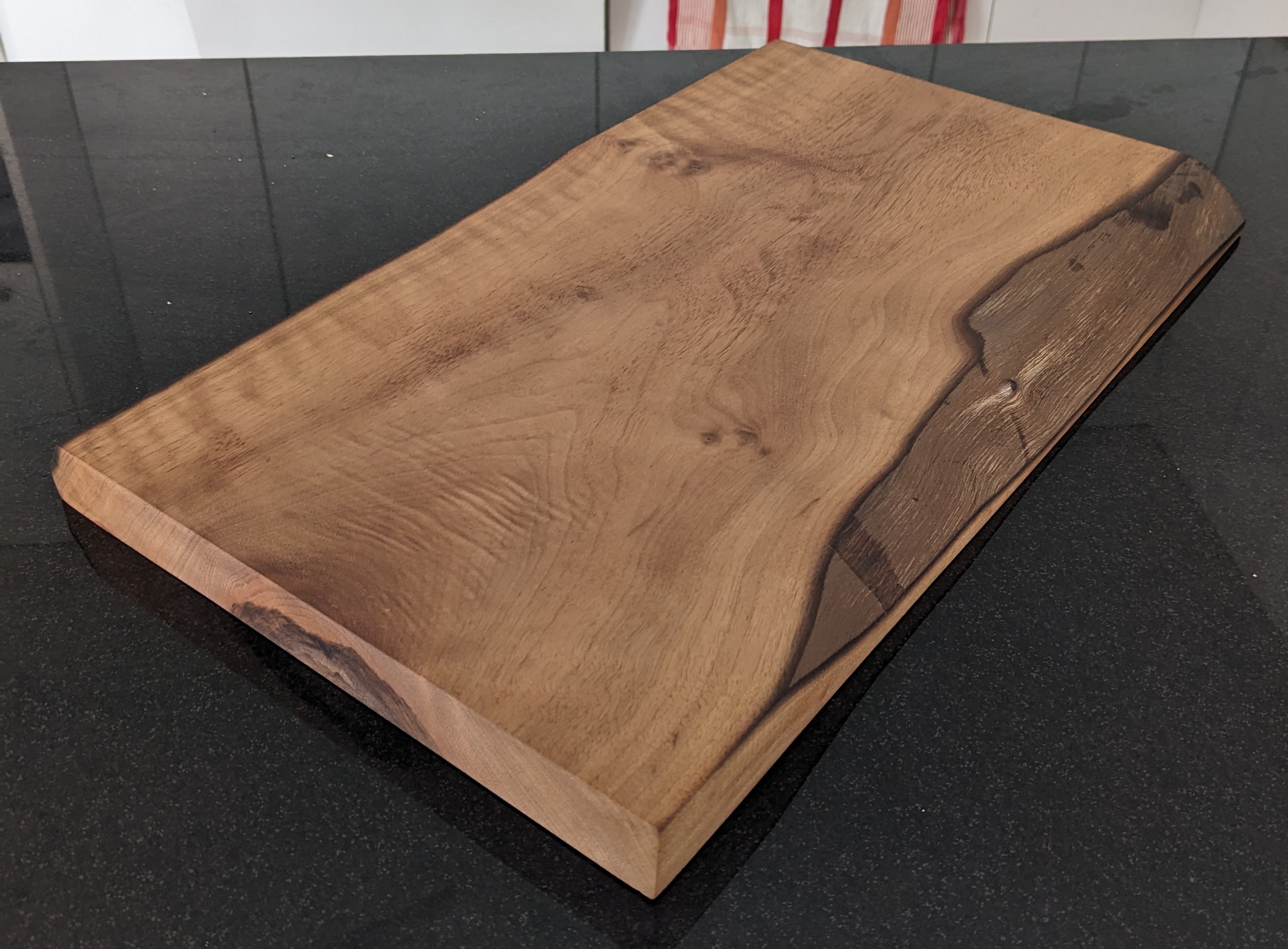 The 2nd cutting board (45x26x3cm). I made it out of walnut wood and decided to keep the beautiful wood bark on this time.