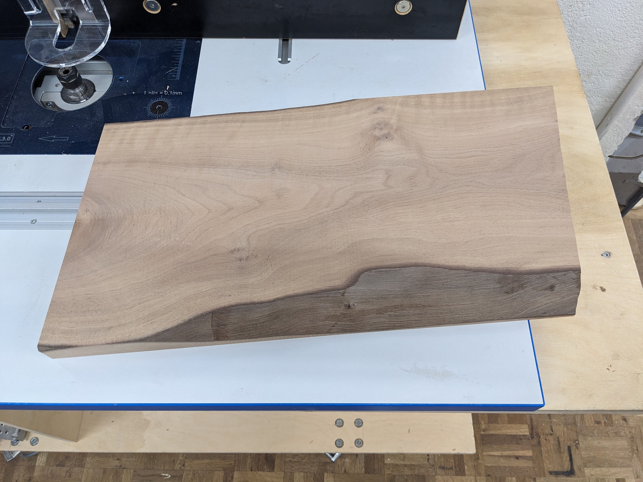 In the wood workshop there’s a variety of wooden planks you can start from, from all kinds of trees. You only pay for what you use, so you don’t have to worry about starting off from a very long plank. You are free to choose any plank you like, so you can really think about which one would look good as a cutting board (or whatever other project you have in mind). I chose walnut, which is considered a ‘premium quality’ wood and is actually the most expensive material you can use, but to be honest for such a small piece such as a cutting board the price difference ends up being not so large anyways.