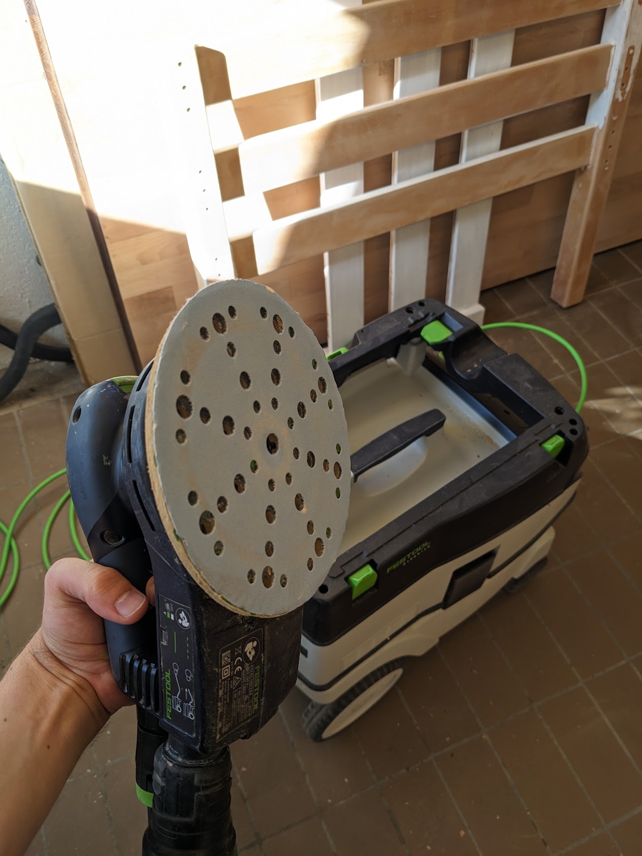 In the workshop there’s sanding machines you can use, they are attached to large vacuums that can move to reduce the amount of dust flying everywhere. Don’t forget to sand the edges as well! But if you have rounded the edges, you may have to use a hand sanding paper instead.
